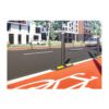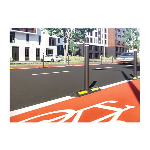 Gumijas atdure – joslu sadalītājs. Krāsa: melna ar dzelteniem atstarotājiem. Izmēri: garums 1100mm, platums 240mm, augstums 80mm. Caurumi: d=45mm, 40x40mm un 60x60mm. Izgatavota no granulētas gumijas un poliuretāna sveķiem. Stiprināšana pie pamatnes ar 2 skrūvēm (neietilpst komplektā!). Svars: 11kg.