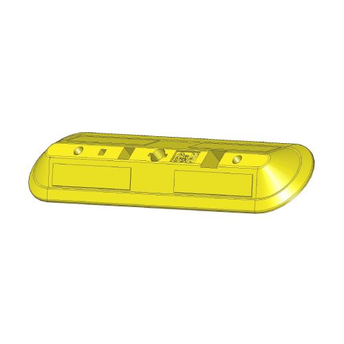Gumijas atdure – joslu sadalītājs. Krāsa: dzeltena. Izmēri: garums 1100mm, platums 240mm, augstums 80mm. Caurumi: d=45mm, 40x40mm un 60x60mm. Izgatavota no granulētas gumijas un poliuretāna sveķiem. Stiprināšana pie pamatnes ar 2 skrūvēm (neietilpst komplektā!). Svars: 11kg.