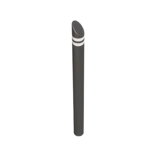 Gumijas stabiņš MODERN. Izgatavots no vulkanizētas gumijas. Izmēri: d=100mm, garums 1400mm. Ar 2 atstarojošām baltām joslām. Betonējams vai ar speciālu pēdu stiprināms. Svars: 12kg.