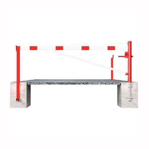 Horizontāli grozāma barjera (ar metāla trosi) ar atbalsta stabu (ar euro-profila cilindra slēdzeni), 5000mm (betonējama) [SCH]