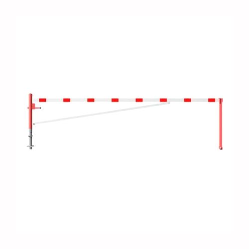Horizontāli grozāma barjera (ar metāla trosi) ar atbalsta stabu (ar euro-profila cilindra slēdzeni), 5500mm (betonējama) [SCH]
