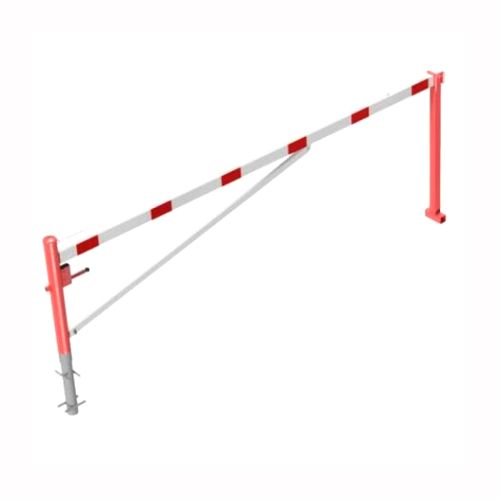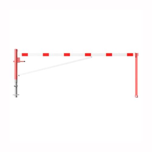 Horizontāli grozāma barjera (ar metāla trosi) ar atbalsta stabu (ar trijstūrveida slēdzeni), 4000mm (betonējama) [SCH]