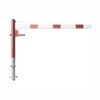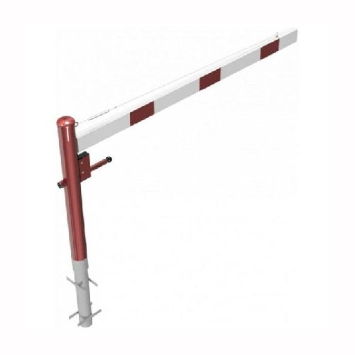 ar tapu, bloķēšana 4 pozīcijās (ik pēc 90 grādiem). Betonējama (ieteicamie betona pamata izmēri 550x550x900mm). Pieejams arī modelis, kur barjera stiprināma pie pamatnes (pēc pieprasījuma). Izmēri: horizontālās barjeras garums 2000mm, vertikālais stabs (karsti cinkots un krāsots sarkans) d=102mm, horizontālā barjera (alumīnija caurule) 100x50mm – balta ar sarkanām atstarojošām joslām, augstums virs zemes 950mm. Karsti cinkota ar baltu korpusu un sarkanām joslām. Svars: 33kg.