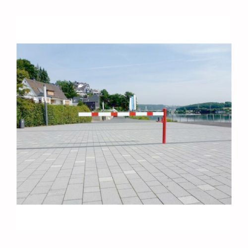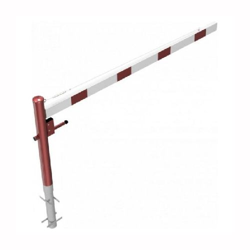 ar tapu, bloķēšana 4 pozīcijās (ik pēc 90 grādiem). Betonējama (ieteicamie betona pamata izmēri 550x550x900mm). Pieejams arī modelis, kur barjera stiprināma pie pamatnes (pēc pieprasījuma). Izmēri: horizontālās barjeras garums 2500mm, vertikālais stabs (karsti cinkots un krāsots sarkans) d=102mm, horizontālā barjera (alumīnija caurule) 100x50mm – balta ar sarkanām atstarojošām joslām, augstums virs zemes 950mm. Karsti cinkota ar baltu korpusu un sarkanām joslām. Svars: 34kg.