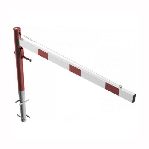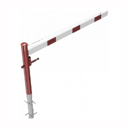 ar tapu, bloķēšana 4 pozīcijās (ik pēc 90 grādiem). Betonējama (ieteicamie betona pamata izmēri 550x550x900mm). Pieejams arī modelis, kur barjera stiprināma pie pamatnes (pēc pieprasījuma). Izmēri: horizontālās barjeras garums 2000mm, vertikālais stabs (karsti cinkots un krāsots sarkans) d=102mm, horizontālā barjera (alumīnija caurule) 100x50mm – balta ar sarkanām atstarojošām joslām, augstums virs zemes 950mm. Karsti cinkota ar baltu korpusu un sarkanām joslām. Svars: 33kg.