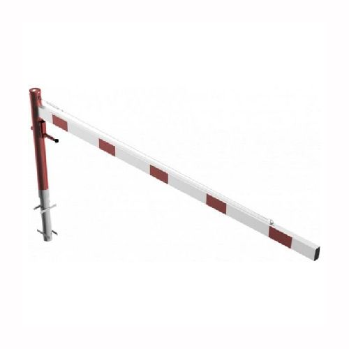 ar tapu, bloķēšana 4 pozīcijās (ik pēc 90 grādiem). Betonējama (ieteicamie betona pamata izmēri 550x550x900mm). Pieejams arī modelis, kur barjera stiprināma pie pamatnes (pēc pieprasījuma). Izmēri: horizontālās barjeras garums 3000mm, vertikālais stabs (karsti cinkots un krāsots sarkans) d=102mm, horizontālā barjera (alumīnija caurule) 100x50mm – balta ar sarkanām atstarojošām joslām, augstums virs zemes 950mm. Karsti cinkota ar baltu korpusu un sarkanām joslām. Svars: 35kg.