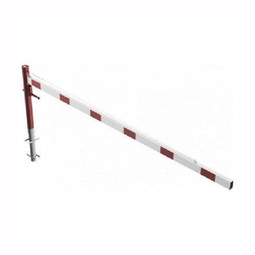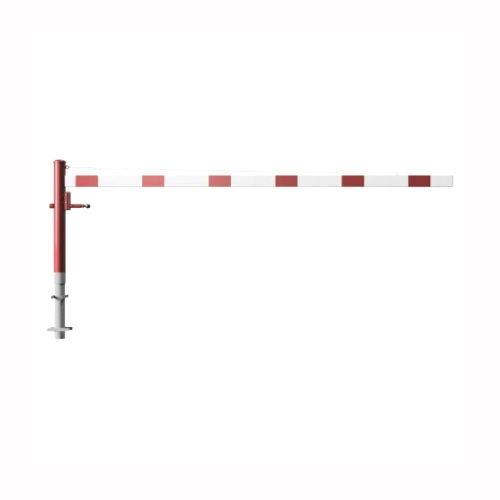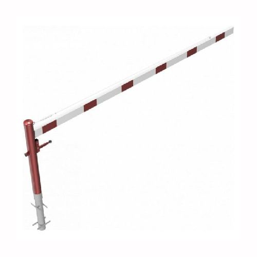 ar tapu, bloķēšana 4 pozīcijās (ik pēc 90 grādiem). Betonējama (ieteicamie betona pamata izmēri 550x550x900mm). Pieejams arī modelis, kur barjera stiprināma pie pamatnes (pēc pieprasījuma). Izmēri: horizontālās barjeras garums 3500mm, vertikālais stabs (karsti cinkots un krāsots sarkans) d=102mm, horizontālā barjera (alumīnija caurule) 100x50mm – balta ar sarkanām atstarojošām joslām, augstums virs zemes 950mm. Karsti cinkota ar baltu korpusu un sarkanām joslām. Svars: 36kg.