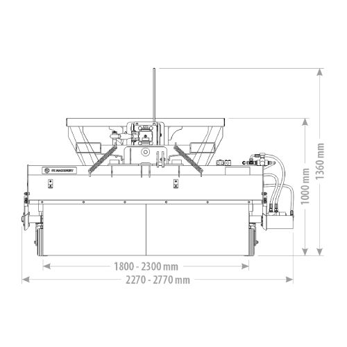 Ielu tīrīšanas birste BASIC. Izmēri: darba platums 2300mm, kopējais platums 2770mm, kopējais augstums 1360mm, dziļums 1250mm. Reljefa sekošana. Atbalsta riteņi d=200mm (2gab.). Palešu dakšu ejas. Darba leņķa regulēšana. Bezpakāpju birstes augstuma regulēšana. Kombinēta metāla-polipropilēna birste. Darba spiediens: 150 bāri (25L/min.). Svars: 368kg.