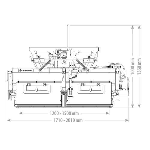 Ielu tīrīšanas birste MINI TANK. Izmēri: darba platums 1200mm, kopējais platums 1710mm, kopējais augstums 1360mm, dziļums 1940mm. Reljefa sekošana. Atbalsta riteņi d=200mm (3gab.). Palešu dakšu ejas. Darba leņķa regulēšana. Bezpakāpju birstes augstuma regulēšana. Kombinēta metāla-polipropilēna birste. Atkritumu tvertne (mehāniska vai hidrauliska). Aspkates lūkas tvertnē. Darba spiediens: 150 bāri (25L/min.). Svars: 360kg.