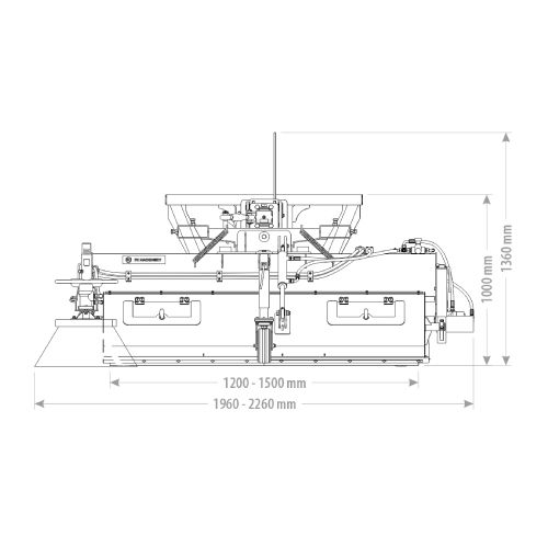 Ielu tīrīšanas birste MINI TANK BRUSH. Izmēri: darba platums 1200mm, kopējais platums 1960mm, kopējais augstums 1360mm, dziļums 2420mm. Reljefa sekošana. Atbalsta riteņi d=200mm (3gab.). Palešu dakšu ejas. Darba leņķa regulēšana. Bezpakāpju birstes augstuma regulēšana. Kombinēta metāla-polipropilēna birste. Atkritumu tvertne (mehāniska vai hidrauliska). Sāna birste (kreisā vai labā). Aspkates lūkas tvertnē. Darba spiediens: 150 bāri (35L/min.). Svars: 390kg.