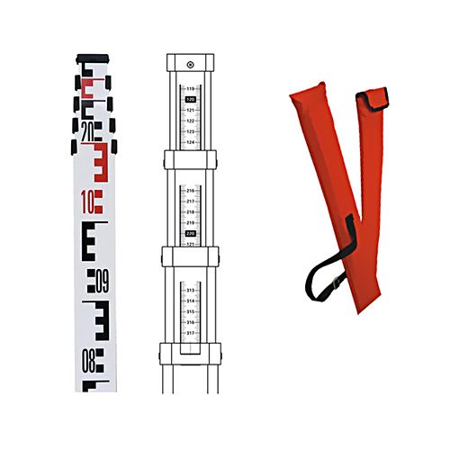 Izbīdāma 4m alumīnija mērlata optiskajam nivelierim. Mērlata ir ar transporta somu.