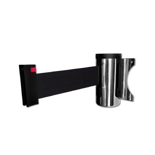 Izvelkama norobežošanas lenta ar iekļautu plastmasas sienas stiprinājumu (stiprināms ar skrūvēm). Pulēta nerūsējošā tērauda korpuss. Izmēri: lentas platums 48mm, garums 3.6m. Lentas krāsa: melna. Aprīkota ar bremžu sistēmu. Svars: 0.5kg.