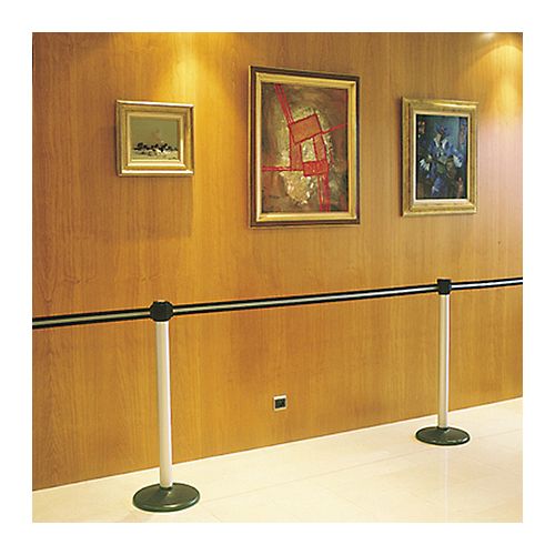Izvelkama norobežošanas lenta ar statīvu un pamatni. Lentas garums: 3m, lentas krāsas: melna/sarkana/melna. Statīva krāsa: sarkana, statīva augstums 955mm, materiāls: krāsots alumīnijs d=60mm, statīva pamatnes d=325mm. Svars: 12kg.