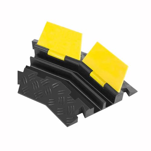 Kabeļu aizsarga 2 kanālu stūra elements – labā puse. Izmēri: 400x250x45mm. Kanālu izmēri: 32x34mm. Krāsa: melna ar dzeltenu vāku. Saliekot 2 stūra elementus, iegūst 90 grādu leņķi. Iztur 12 tonnu slodzi.