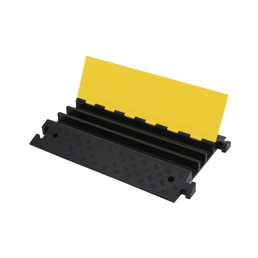 Vadu un kabeļu aizsargs. Izmēri: 900x500x70 mm. Krāsa: melna ar dzeltenu vāku. 3 kabeļu kanāli 2x (70×45) mm 1x (55×45) mm. Iztur svaru līdz 9 tonnām uz vienu riteņa asi. Svars: 17kg.
