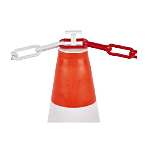 Ķēdes stiprinājums konusam. Krāsa: balta. Pielietojams kā stiprinājums, lai no viena konusa uz otru pārvilktu plastmasas ķēdi. Stiprinājums piemērots 35cm un 50cm konusiem.