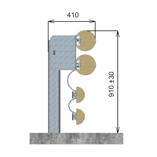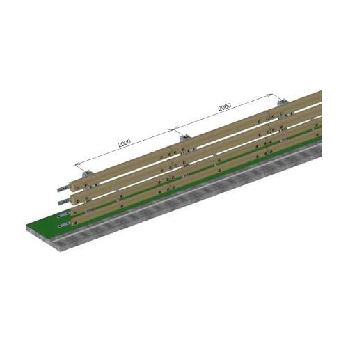 Kombinēta koka-metāla ceļu norobežošanas barjera GH2 (H2W4), stabs ik pēc 2m (h=910mm), 4-līmeņu
