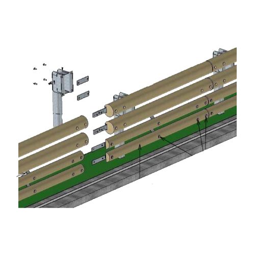 Kombinēta koka-metāla ceļu norobežošanas barjera G4H2 (4-līmeņu). Stabs ik pēc 2 metriem. Kopējais platums 410mm, augstums virs zemes 910mm (+/-30mm). Koka konstrukcija vienā pusē. Ierobežošanas līmenis H2, darba platums W4 (1m). Ietekmes smaguma pakāpe B. transportlīdzekļa ielaušanās (klase) VI4. Metāla konstrukcija – karsti cinkots tērauds (ISO 1461), koka konstrukcija – Pinus 4.klase (EN 335). Augsta kvalitāte un izturība. Barjera īpaši pielāgota dabas objektu, mežu un kalnu ceļiem, parkiem, dabas rezervātiem, atpūtas vietām u.c. Iespējams izgatavot atbilstoši vajadzībām. Barjera sertificēta.