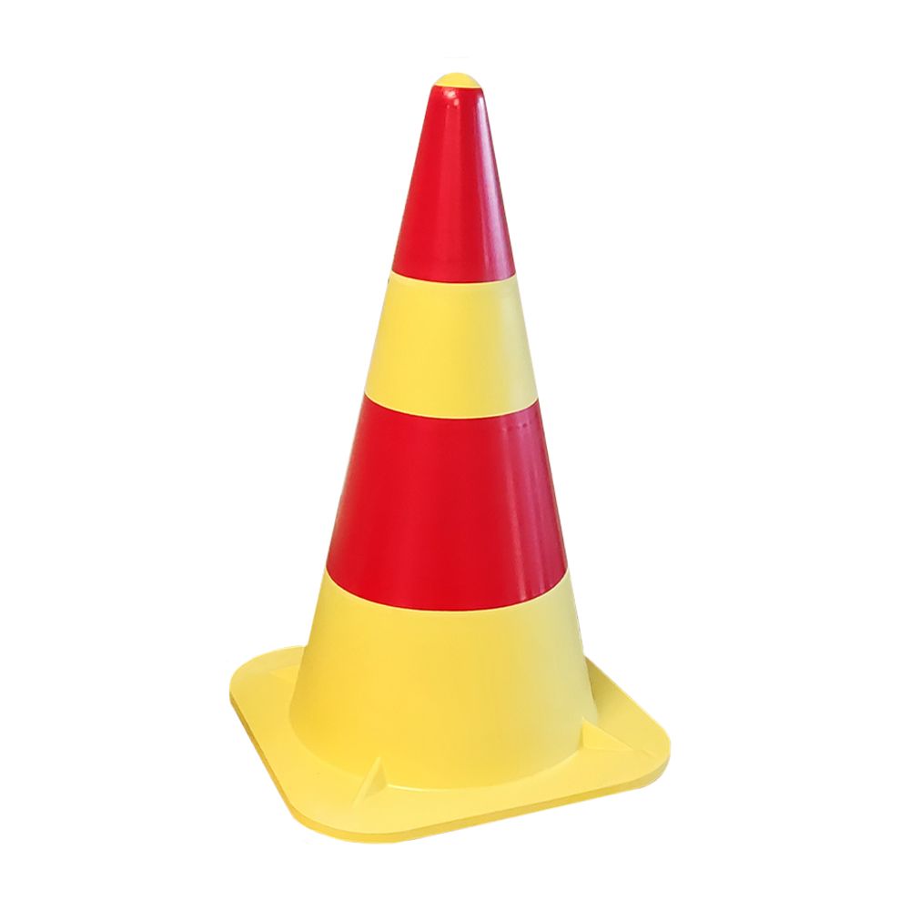 Konuss EUROPA KOBOLD. Dzeltens ar sarkanām joslām. Augstums: 51cm. Izgatavots no izturīga kaoutčuka maisījuma (gumijas).