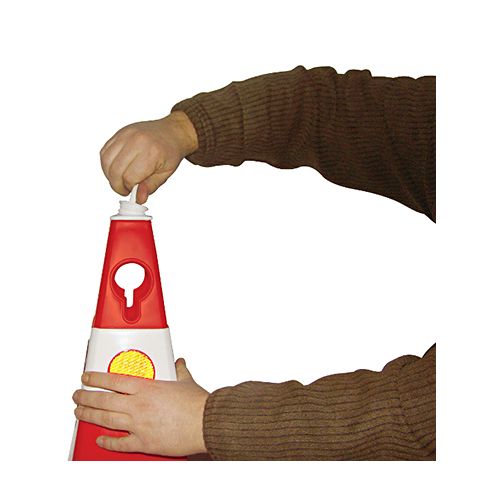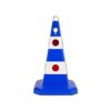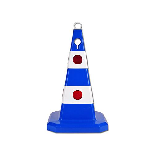 Konuss (smagais), PP. Augstums 62cm. Aprīkots ar atstarotājiem. Krāsa: zila. Pamatnes izmērs: 37x37cm. Caur konusu iespējams izvilkt cauri plastmasa ķēdi. Svars: 4,8kg.