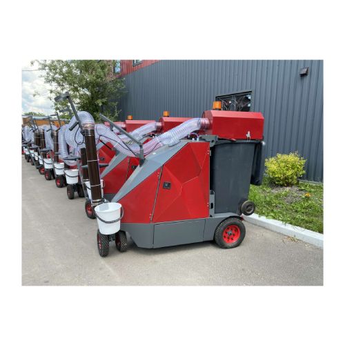 Lapu un atkritumu savācējmašīna. Moderna iekārta ielu, ietvju, stadionu, dzelzceļa staciju, lidostu, autostāvvietu, industriālo zonu u.c. vietu tīrīšanai no kritušām lapām un dažāda veida atkritumiem. Var iesūkt lapas, cigarešu atlikumus, papīru, kartonu, plastmasu, koksni, tekstila atkritumus, kannas un pudeles, tēraudu utt. Izmantojams uz betona, asfalta, bruģa, zāliena, smilts virsmām. Specifikācija: darbojas ar elektriskajiem akumulatoriem (8h nepārtrauktai darbībai). Lādējas no parasta barošanas avota (220V). Pašgājējs, bez trokšņa, vadāms (stumjams) ar vienu roku. Aprīkots ar atkritumu tvertni (240L). Atkritumu maisa maiņa aizņem tikai 2-3 minūtes. Kustības ātrums 6km/h, trokšņa līmenis 64,2dB, filtrs motora aizsardzībai, izejas (iesūkšanas uzgaļa) diametrs 125mm, izvada garums 2500mm, akumulatora uzlādes laiks 10-12h, iesūkšanas uzgaļa d=125mm. Svars: 468kg.