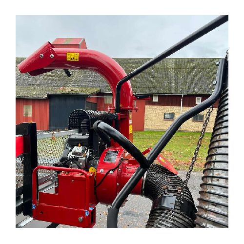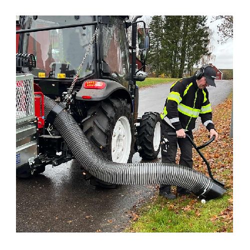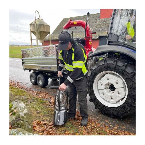 Lapu un atkritumu savācējs – putekļsūcējs. Stiprināms pie kravas kastes malas. Iekārta uzsūc lapas un vieglākus materiālus uz piekabi.