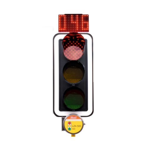 Atpakaļskaitīšanas taimeris mobilajam luksoforam ar laika atskaiti [NI tipa luksoforiem). Laika atskaite pie sarkanās gaismas. Voltāža: 12V. Izmēri: garums 340mm, augstums 200mm. Parādās visas sarkanās frāzes laikā. Regulējams diapazons līdz 9:59 minūtēm. Zems enerģijas patēriņš (0,5A).