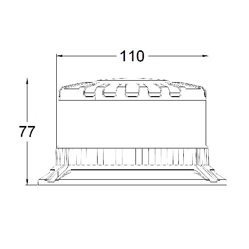 LED bākuguns. Stiprināma uz 3 skrūvēm (12V-24V). R65 (koša bākuguns). Aprīkota ar 16 košām LED diodēm. Izmēri: augstums 77mm, kupola d=110mm. Temperatūras diapazons: no -30 līdz +50 grādiem pēc Celsija. Noslēgts korpuss pret mitrumu un putekļiem.