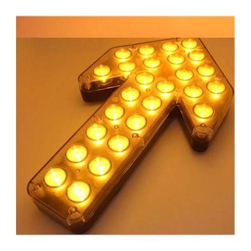 LED brīdinājuma bulta uz magnēta (mirgojoša). Lādējama (220V), komplektā lādētājs. Lādēšana – 3h; darbojas – 14h. Viens režīms – mirgojošs. Izmēri: garums 350mm, platums 200mm, augstums ar magnētisko daļu 48mm (bez magnēta 42mm). Aprīkota ar 26 LED diodēm (katra diode: 1W). Baterija: 3.7V, 7500mAh. Redzamība: ap 500m. Spēcīgi 2gab. magnēti bultas piestiprināšanai pie metāla virsmām. Mitrumziturības klase: IPX4.