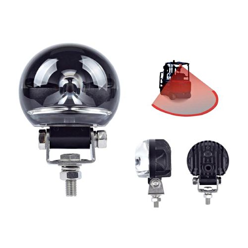 LED darba lukturis (drošības gaisma) ar projicējošu sarkanu loku. Jauda: 10W (1 LED). SPriegums: 10-80V. Stiprināšana ar 1 skrūvi. Izturīgs alumīnija korpuss.