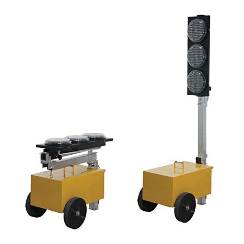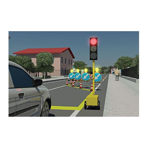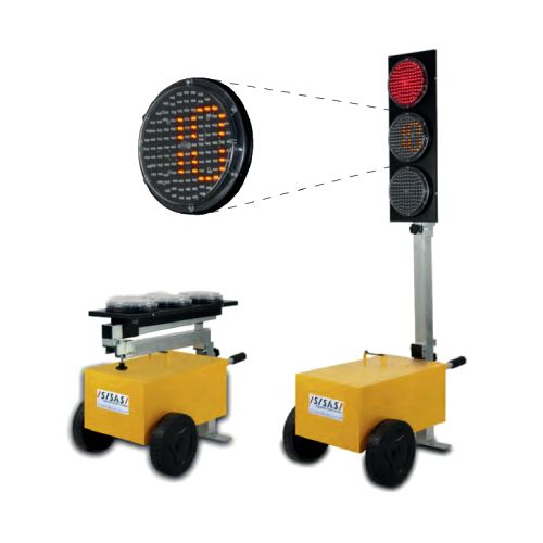 LED mobilais luksofors ar laika atskaiti (komplektā 2 luksofori). Laika atskaite pie zaļās un sarkanās gaismas. Barošanas avots: akumulators 12V (neietilpst komplektā!), gaismas avots: 3 LED optikas 200 mm diametrā (katrā LED optikā ir 120 LED diodes). Pašregulējoša spilgtuma kontrole. Dzelteni krāsots korpuss. LED optikas pamatne ir melnā krāsā. Izmēri: 25x75x2,2cm.