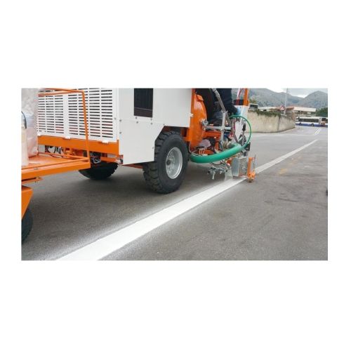 Līniju krāsošanas ierīce 2-komponentu aukstajam plastikātam 400C-ST (turbo dīzeļa dzinējs). Ideāli piemērota darbiem, kur nepieciešama liela aukstā plastikāta tvertnes ietilpība, ierīce uz 4 riteņiem ar sēdošu operatoru, precizitāte un stabilitāte. Pielietojama aukstā materiāla izstrādei. Spiediena tvertne aukstajam plastikātam: tilpums 250l (250C-ST) – 400l (400C-ST), izgatavots no nerūsējošā tērauda, ar hidraulisko maisītāju. Gravitācijas tvertne pulvera katalizatoram: tilpums 22l. Ar elektrisko dozēšanas ierīci, elektroniski regulējams. Spiediena stikla pērlīšu tvertne, tilpums 100l (250C-ST) – 170l (400C-ST). Ar spiediena regulatoru un mitruma separatoru. Kompresors: zems gaisa ātrums 827l/min. Automātiska stikla lodīšu pistole ar gaisa sadales sistēmu. Difuzors ar regulējamu slīpumu un regulējamiem atvēršanas leņķiem. Aizvēršanas aizkaves regulators lodīšu pistolei. Maksimālais līnija platums: 30cm (sasniedzams tikai ar atbilstošu papildu aprīkojumu). Komplekts aglomerāta līnijai, kas sastāv no: veltņa ar maināmi zobiem, veltņa turētāja ar hidraulisko motoru, 2 prioritārajiem vārstiem, kas padara veltņa un maisītāja ātrumu neatkarīgu no dzinēja apgriezienu skaita. Elektroniskā distancēšanas ierīce C8000 + programma profila līnijai: 8 saglabājamas programmas, trauksme, ja ātrums ir ārpus iestatītā minimālā/maksimālā ātruma diapazona: kopējie nepārtrauktās līnijas metri, kopējie dati par mašīnu: kopējais nobrauktais km; profila programma: iestata katras joslas garumu un attālumu starp 2 stieņiem. Turbo dīzeļdzinējs: jauda 44ZS, šķidruma dzesēšana. Darba gaismas un LED bāka. Brīdinājuma panelis ar bultu automašīnas apdzīšanai pa kreisi/pa labi un 2 mirgojoši režīmi. Hidrauliskā piedziņa ar: 2 motoriem, kas tieši savienoti uz aizmugurējiem riteņiem, hidrauliskām negatīvām bremzēm, uz priekšu, atpakaļgaitā un neitrālā pārnesuma vadību ar negatīvo bremžu iedarbināšanu, mainīgas plūsmas sūkņi. Stūre uz priekšējiem riteņiem. Stūres diametrs 7,35m (250C-ST). Sēdeklis ar regulējamu pozīciju (pa kreisi/pa labi; uz priekšu/aizmuguri). Saulessarga jumts. Fotoattēls neatspoguļo standarta versiju.