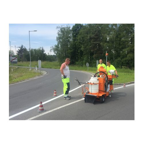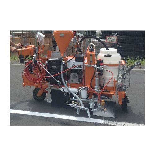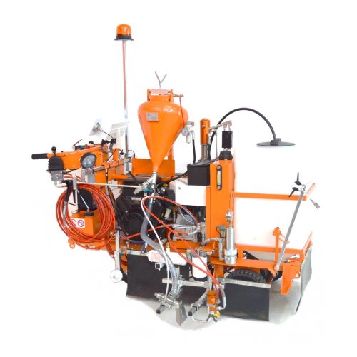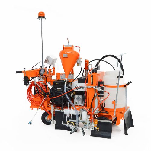 Līniju krāsošanas ierīce AR100-G. Darbināma ar benzīna dzinēju (Petrol 16HP). Augstas veiktspējas. Piemērota stāvām nogāzēm, viegli manevrējama. Pielieto ielu zīmēm, autostāvvietām, velojoslām, izmantojot 1-3 pistoles. Bezgaisa tehnoloģija. Uz 3 riteņiem. Spiediena stikla lodīšu tvertne 20l (iegādājama papildus). Maksimālais līnijas platums: 900mm. Maksimālā izsmidzināšanas plūsma: 8.9/minūtē. Kompresora gaisa plūsmas ātrums: 394l/min. Elektriskā startēšana. Izmantojama divkomponentu krāsa. Aprīkota ar izsmidzināšanas pistoli (sprausla līnijas platumam 100-150mm (citu izmēru sprauslas iegādājamas atsevišķi). Grozāms priekšējais ritenis – to var nobloķēt/atbloķēt ar sviru pie roktura uz stūres. Aprīkota ar darba gaismu un LED bākuguni. Izmēri: 1850x750x1600mm. Svars: 540kg. Papildus iespējams iegādāties papildaprīkojumu. Fotoattēli neatspoguļo krāsošanas ierīces standarta versiju.