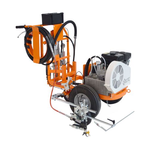 Līniju krāsošanas ierīce AR30PROP-G. Darbināma ar benzīna dzinēju (Petrol 6HP). Piemērota marķēšanai uz betona virsmām, kur nepieciešama ārkārtēja manevrētspēja šaurās vietās. Nelieliem ceļu uzturēšanas darbiem, autostāvvietām, sporta laukumiem, veloceliņiem. Bezgaisa tehnoloģija. Iespējams benzīna dzinēju ātri nomainīt pret elektromotoru (iegādājams atsevišķi). Spiediena stikla lodīšu tvertne (iegādājama papildus). Maksimālais līnijas platums: 500mm. Maksimālā izsmidzināšanas plūsma: 6.17l/minūtē. Stumjama ar rokām. Izmantojama vienkomponentu krāsa uz šķīdinātāju vai ūdens bāzes, šķīdinātāja vai ūdens bāzes epoksīda krāsas, poliuretāna krāsas, kas īpaši izstrādātas bezgaisa lietošanai. Aprīkota ar 1 noņemamu izsmidzināšanas pistoli (sprausla līnijas platumam 100-200mm (citu izmēru sprauslas iegādājamas atsevišķi). Papildus var pielikt vēl 1 pistoli lielāku laukumu krāsošanai (atsevišķi iegādājama). Pistoles atbalsta ritenis (seko marķēšanas līnijai). 15m krāsošanas šļūtene. Grozāms priekšējais ritenis – to var nobloķēt/atbloķēt ar sviru pie roktura uz stūres. Izmēri: 1260x640x1020mm. Svars: 121kg. Iespējams pievienot speciālus ratiņus. Papildus iespējams iegādāties papildaprīkojumu. Fotoattēli neatspoguļo krāsošanas ierīces standarta versiju.