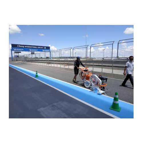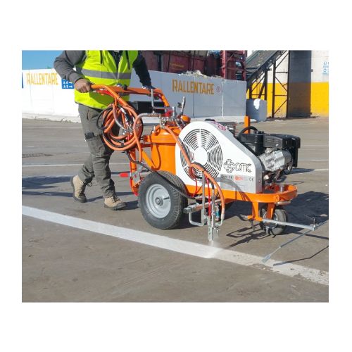 Līniju krāsošanas ierīce L40-PRO (maziem laukumiem). Atstarojošām krāsām ar iepriekš sajauktām stikla lodītēm, pretslīdes krāsām, nelieliem ceļu uzturēšanas darbiem, autostāvvietām, sporta laukumiem, veloceliņiem. IDEĀLI PIEMĒROTI: maziem ceļu uzturēšanas darbiem, autostāvvietām, sporta laukumiem, veloceliņiem. KRĀSAS LIETOŠANA: refrakcijas (ar iepriekš sajauktām stikla lodītēm), nerefrakcijas, speciālas krāsas ar augstu pretslīdes saturu. Spiediena krāsas tvertne: ietilpība 40l, ar manuālu maisītāju un pilnībā noņemamu vāku vieglākai un ātrākai tīrīšanai. Šķīdinātāja tvertne pistoles un krāsas šļūtenes skalošanai. Kompresors: gaisa plūsmas ātrums 394 l/min. Automātiska krāsošanas pistole ar līnijas ierobežotāju (apvalku), uzstādīta uz fiksēta balsta ar regulējamu pistoles augstumu. (Fiksēto balstu var aizstāt ar pneimatisko balstu vai ar marķēšanas diskiem). Standarta sprausla 10-20 cm līnijai. MAX. LĪNIJAS PLATUMS: 30cm. (var sasniegt tikai ar atbilstošu papildu aprīkojumu). Benzīna dzinējs: jauda 6 ZS, paštinuma vilkšanas starts. Rokas stumšana. (Ir iespējams aprīkot līniju marķēšanas iekārtu ar hidrauliskajiem motorizētajiem ratiņiem). Grozāms priekšējais ritenis. Darba laikā to var aizslēgt vai atbloķēt ar sviru uz stūres.