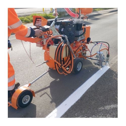 Līniju krāsošanas ierīce L90IETP (Petrol benzīna dzinējs). Augstas veiktspējas L90IETP aerosola marķēšanas mašīnas, ērta vadāmība pat uz slīpiem ceļiem. Ideāli piemērota ceļu uzturēšanas darbiem, kur nepieciešama laba krāsas tvertnes ietilpība. Krāsas pielietojums: refrakcijas (=ar iepriekš sajauktām stikla lodītēm), nerefrakcijas, speciālas krāsas ar augstu pretslīdes saturu. Standarta konfigurācijā: benzīna dzinējs: 21 ZS. Elektriskā palaišana. Hidrauliskā piedziņa ar mainīgas plūsmas sūkni. Spiediena krāsas tvertne 90l – no nerūsējošā tērauda. Šķīdinātāja tvertne. Kompresors 827l/min. 1 automātiskā krāsošanas pistole – 10-20 cm līnija. Elektroniskā attāluma ierīce C8000. Darba gaisma un LED bāka. Grozāms priekšējais ritenis. Piekabe (ratiņi) ar stāvošu vadītāju. Bezgaisa tehnoloģija. Pistoles: no 1 līdz 2. Maksimālais līnijas platums: 50cm (sasniedzams tikai ar atbilstošu papildu aprīkojumu). Izsmidzināmi līdzekļi: speciālas krāsas ar pretslīdēšanu. Izmēri 1900x800xh1050mm. Svars 415 kg. Fotoattēls neatspoguļo standarta versiju.