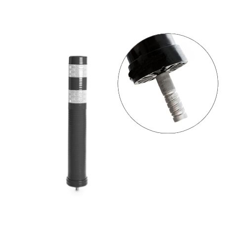 Stabiņš lokans, melns. Izmēri: augstums 40cm, diametrs 8cm (pieejams arī 68cm, 80cm un 100cm augstumā), vītnes d=16mm. Augšējā daļa taisna (iespējams arī ar noapaļotu augšdaļu). Izgatavots no poliuretāna. Aprīkots ar elastīgu, 2. atstarošanas klases līmplēvi ORALITE 5930MFLEX (paredzēta gludām plastmasas virsmām). Apakšējā daļas vītne noskrūvējama, iemontējama pamatnē ar līmi (ķīmiju) vai iebetonējama, stabiņš pēc tam uzskrūvējams uz pamatnē iestrādātās vītnes. Izturīgs, elastīgs. Trieciena rezultātā atgriežas sākotnējā stāvoklī. Stiprināšana ar skrūvēm (skrūves neietilpst cenā!). Taisna vai noapaļota augšdaļa (pēc izvēles). Papildus opcija par papildus samaksu – apakšējā daļā josla ar stikla atstarotājiem. Svars: 1kg.