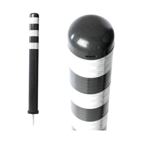 Stabiņš lokans, oranžs. Izmēri: augstums 68cm, diametrs 8cm (pieejams arī 40cm, 80cm un 100cm augstumā). Izgatavots no poliuretāna. Aprīkots ar atstarojošām joslām. Apakšējā daļas vītne noskrūvējama, iemontējama pamatnē ar līmi (ķīmiju) vai iebetonējama, stabiņš pēc tam uzskrūvējams uz pamatnē iestrādātās vītnes. Izturīgs, elastīgs. Trieciena rezultātā atgriežas sākotnējā stāvoklī. Taisna vai noapaļota augšdaļa (pēc izvēles). Papildus opcija par papildus samaksu – apakšējā daļā josla ar stikla atstarotājiem. Svars: 1.2kg.