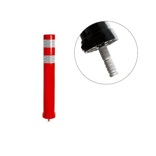 Stabiņš lokans, sarkans. Izmēri: augstums 40cm, diametrs 8cm (pieejams arī 68cm, 80cm un 100cm augstumā), vītnes d=16mm. Izgatavots no poliuretāna. Aprīkots ar elastīgu, 2. atstarošanas klases līmplēvi ORALITE 5930MFLEX (paredzēta gludām plastmasas virsmām). Apakšējā daļas vītne noskrūvējama, iemontējama pamatnē ar līmi (ķīmiju) vai iebetonējama, stabiņš pēc tam uzskrūvējams uz pamatnē iestrādātās vītnes. Izturīgs, elastīgs. Trieciena rezultātā atgriežas sākotnējā stāvoklī. Taisna vai noapaļota augšdaļa (pēc izvēles). Papildus opcija par papildus samaksu – apakšējā daļā josla ar stikla atstarotājiem. Svars: 1kg.
