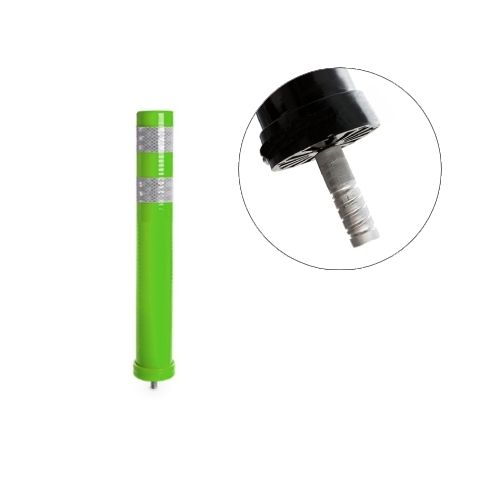 Stabiņš lokans, zaļš. Izmēri: augstums 40cm, diametrs 11cm (pieejams arī 80cm augstumā), vītnes d=16mm. Augšējā daļa taisna (iespējams arī ar noapaļotu augšdaļu). Izgatavots no poliuretāna. Aprīkots ar elastīgu, 2. atstarošanas klases līmplēvi ORALITE 5930MFLEX (paredzēta gludām plastmasas virsmām). Apakšējā daļas vītne noskrūvējama, iemontējama pamatnē ar līmi (ķīmiju) vai iebetonējama, stabiņš pēc tam uzskrūvējams uz pamatnē iestrādātās vītnes. Izturīgs, elastīgs. Trieciena rezultātā atgriežas sākotnējā stāvoklī. Papildus opcija par papildus samaksu – apakšējā daļā josla ar stikla atstarotājiem.