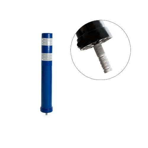 Stabiņš lokans, zils. Izmēri: augstums 40cm, diametrs 8cm (pieejams arī 68cm, 80cm un 100cm augstumā), vītnes d=16mm. Izgatavots no poliuretāna. Aprīkots ar elastīgu, 2. atstarošanas klases līmplēvi ORALITE 5930MFLEX (paredzēta gludām plastmasas virsmām). Apakšējā daļas vītne noskrūvējama, iemontējama pamatnē ar līmi (ķīmiju) vai iebetonējama, stabiņš pēc tam uzskrūvējams uz pamatnē iestrādātās vītnes. Izturīgs, elastīgs. Trieciena rezultātā atgriežas sākotnējā stāvoklī. Stiprināšana ar skrūvēm (skrūves neietilpst cenā!). Taisna vai noapaļota augšdaļa (pēc izvēles). Papildus opcija par papildus samaksu – apakšējā daļā josla ar stikla atstarotājiem. Svars: 1kg.
