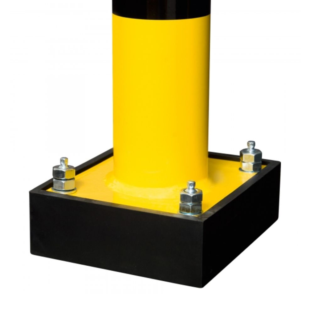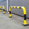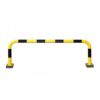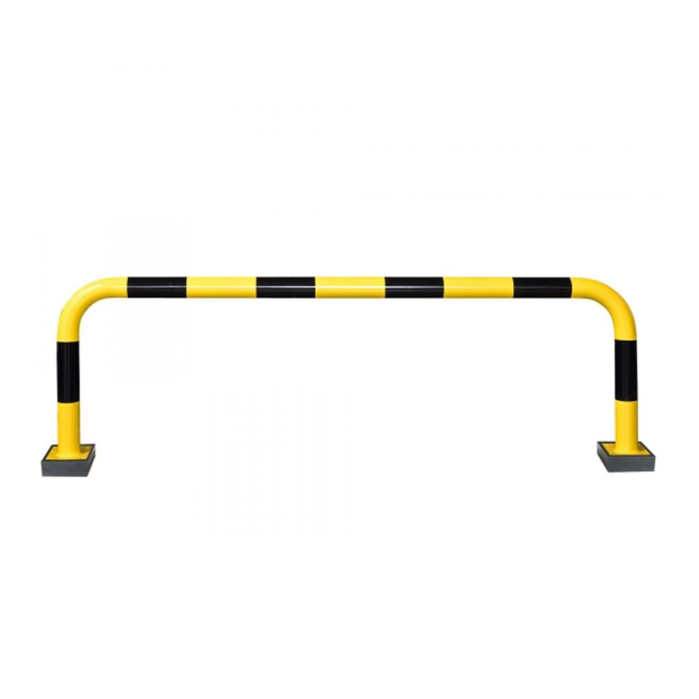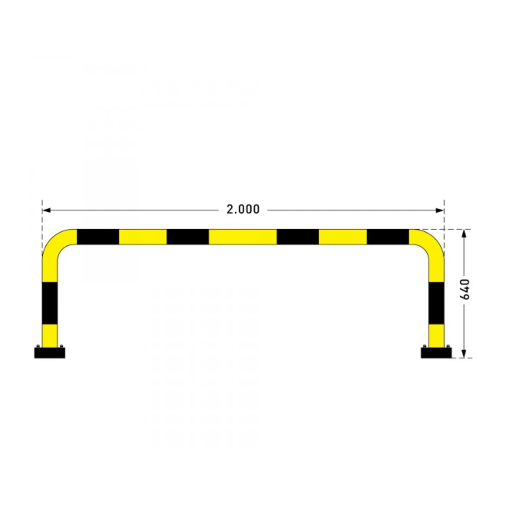 Metāla aizsargbarjera – dzeltena ar melnām atstarojošām joslām. Krāsota vai karsti cinkota un krāsota. Izmēri: platums 2000mm, augstums 640mm. Caurules diametrs – 76mm. Pamatnes izmērs: 160x140x10mm. Svars: 19.6kg. Stiprināšana ar 8 skrūvēm (nav iekļautas komplektā!)