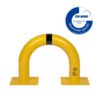 Metāla aizsargbarjera – dzeltena (RAL 1023) ar melnām atstarojošām joslām. Cinkota un krāsota. Piemērota izmantošanai ārā. Izmēri: platums 420mm, augstums 350mm, metāla biezums 3,2mm. Caurules diametrs – 76mm. Barjera izgatavota ar lieces tehnoloģiju – bez metinājuma šuvēm. Pamatnes izmērs: 120x195mm. Stiprināšana pie zemes ar 8 skrūvēm d=12,5mm (nav iekļautas komplektā!). TÜV sertifikāts. Svars: 6,9kg.