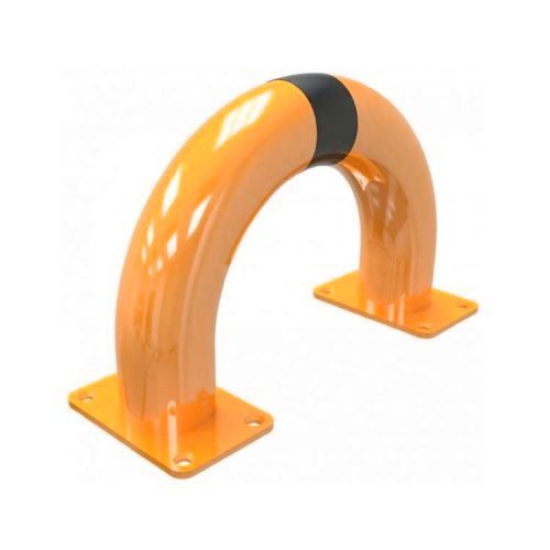 Metāla aizsargbarjera – oranži dzeltena ar melnām joslām. Karsti cinkota un krāsota. Piemērota izmantošanai ārā. Izmēri: platums 400mm, augstums 250mm. Caurules diametrs – 76mm. Stiprināšana pie zemes ar 8 skrūvēm (nav iekļautas komplektā!). Svars: 4kg.