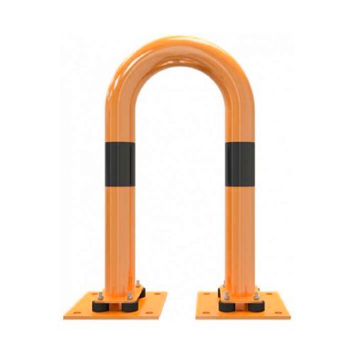 Metāla aizsargbarjera – oranži dzeltena ar melnām joslām. Karsti cinkota un krāsota. Piemērota izmantošanai ārā. Izmēri: platums 750mm, augstums 250mm. Caurules diametrs – 76mm. Stiprināšana pie zemes ar 8 skrūvēm (nav iekļautas komplektā!). Svars: 6kg.