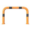 Metāla aizsargbarjera – oranži dzeltena ar melnām joslām. Karsti cinkota un krāsota. Piemērota izmantošanai ārā. Izmēri: platums 750mm, augstums 650mm. Caurules diametrs – 76mm. Stiprināšana pie zemes ar 8 skrūvēm (nav iekļautas komplektā!). Svars: 10kg.