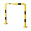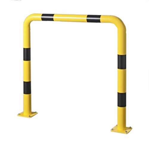 Metāla aizsargbarjera – dzeltena ar melnām brīdinošām joslām. Cinkota un krāsota. Izmēri: caurules d=76mm, platums 1200mm, augstums 1200mm, metāla biezums caurulei 2mm, pamatnes izmērs 180x180x8mm. Stiprināšana pie zemes ar 8 skrūvēm d=13mm (nav iekļautas komplektā!). Piemērota izmantošanai iekštelpās un ārā. Svars: 15.7kg.