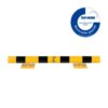Metāla aizsargbarjera – dzeltena (RAL 1023) ar melnām atstarojošām joslām. Cinkota un krāsota. Piemērota izmantošanai ārā. Izmēri: garums 1000mm, platums 180mm. Caurules diametrs – 76mm. Pamatnes izmērs: 120x195x6mm. Stiprināšana pie zemes ar 4 skrūvēm d=12,5mm (nav iekļautas komplektā!). TÜV sertifikāts. Svars: 10,4kg.