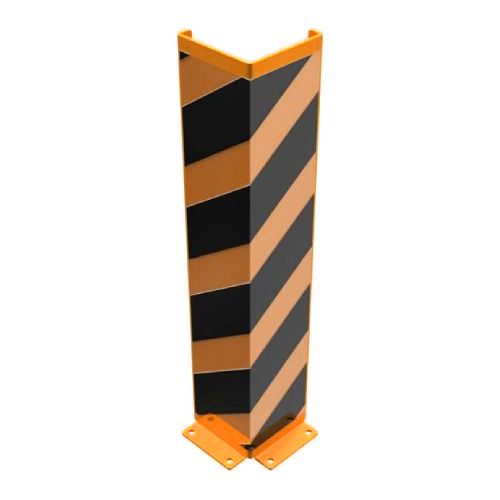 Metāla aizsargbarjera ar pastiprinātām malām (L-tipa) – oranži dzeltena ar melnām atstarojošām joslām. Krāsota. Piemērota izmantošanai iekštelpās. Izmēri: garums uz abām pusēm 160mm, augstums 800mm, metāla biezums 6mm. Stiprināšana pie zemes ar 4 skrūvēm (nav iekļautas komplektā!). Svars: 14kg.