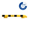 Metāla aizsargbarjeras iekšējais stūris (labā puse). Krāsa: dzeltena (RAL 1023) ar melnām atstarojošām joslām. Cinkots un krāsots. Piemērota izmantošanai ārā. Izmēri: garums 1000mm, augstums 140mm. Caurules diametrs – 76mm. Pamatnes izmērs: 120x195x6mm. Stiprināšana pie zemes ar 4 skrūvēm d=12,5mm (nav iekļautas komplektā!). TÜV sertifikāts. Svars: 11,3kg.